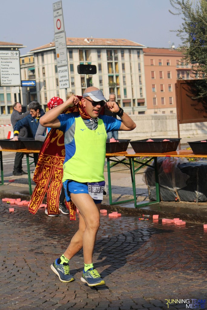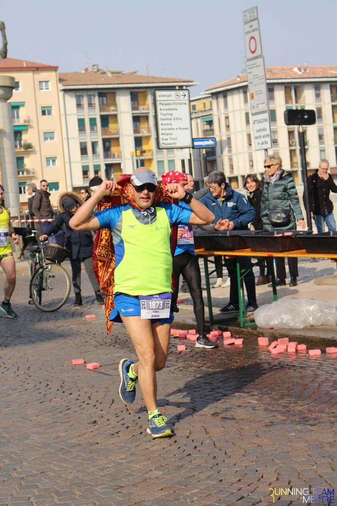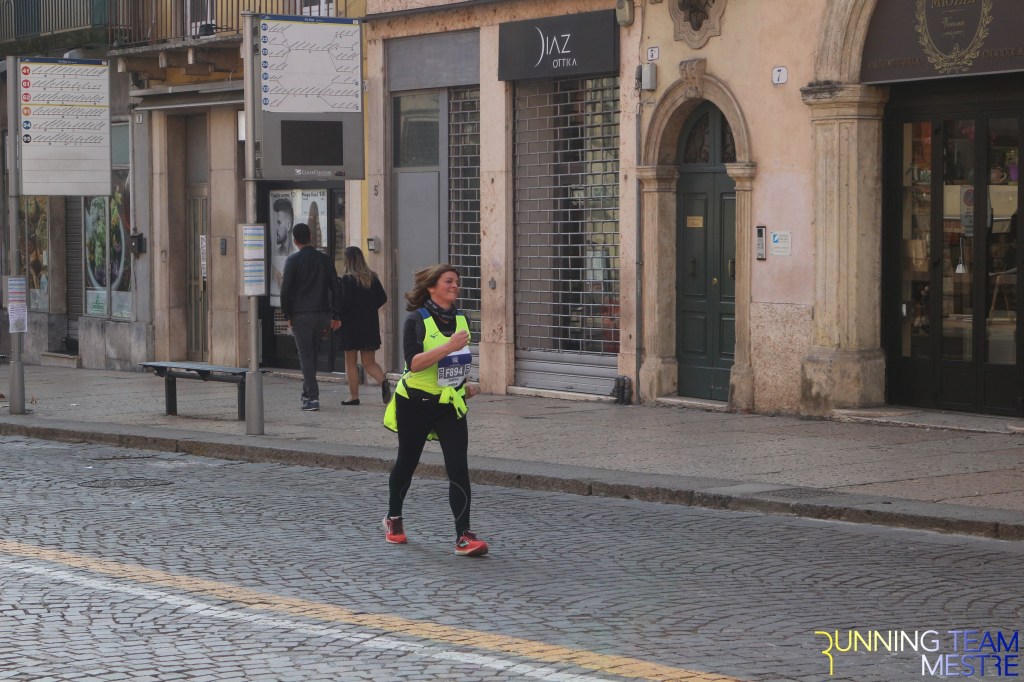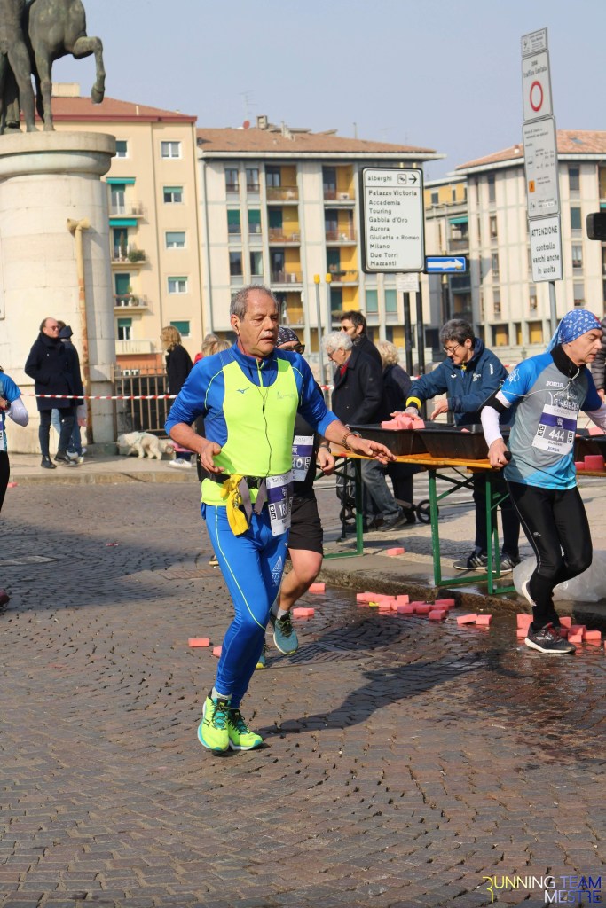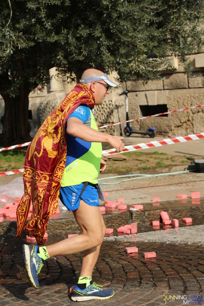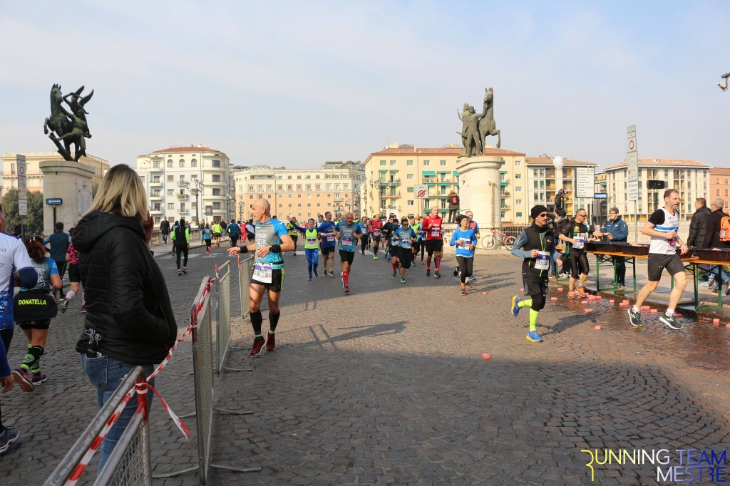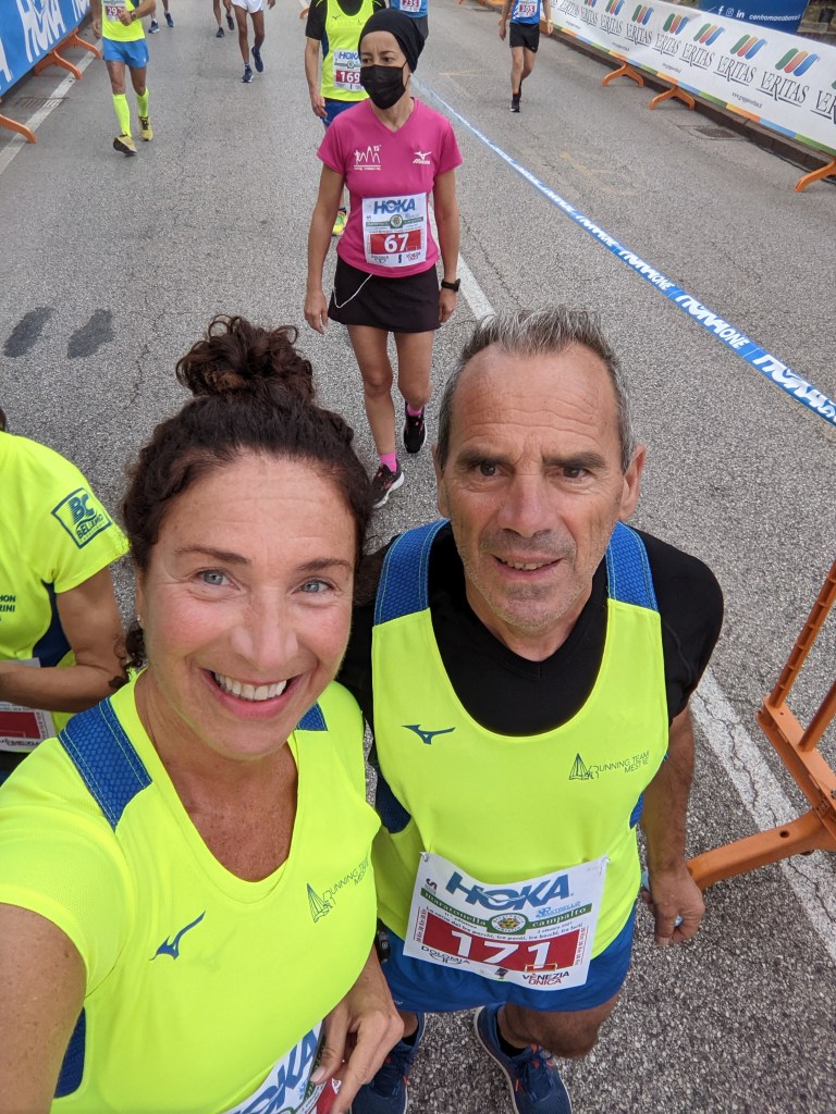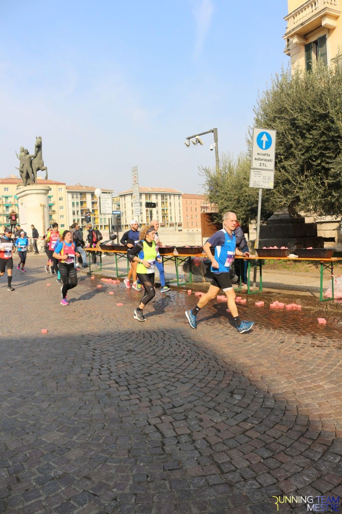 Pronti, partenza e via. All’ottavo km, ero già tra gli ultimi, al ventesimo avrei prosciugato il ristoro, all’arrivo è stato un sollievo vedere i rubinetti della Veritas. Per la cronaca, sono arrivata mentre il vice mi salutava e dietro di me avevo solo cinque persone; poco prima, al ristoro a Passo Campalto, il commento dei volontari è stato: “dopo de questi, manca soeo i reduci daea guera de Russia” in verace slang veneziano.