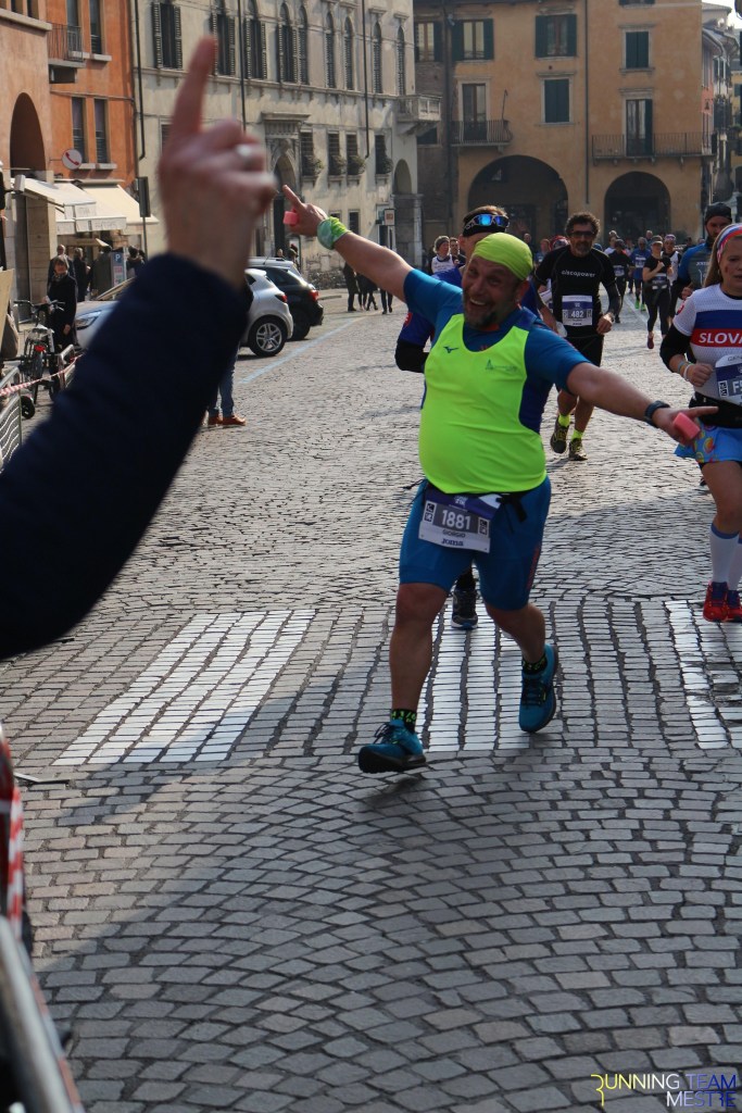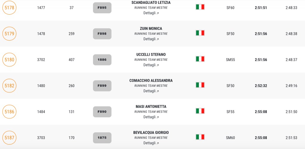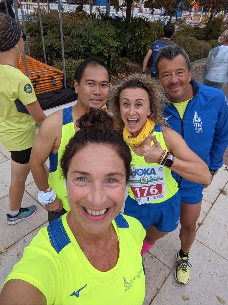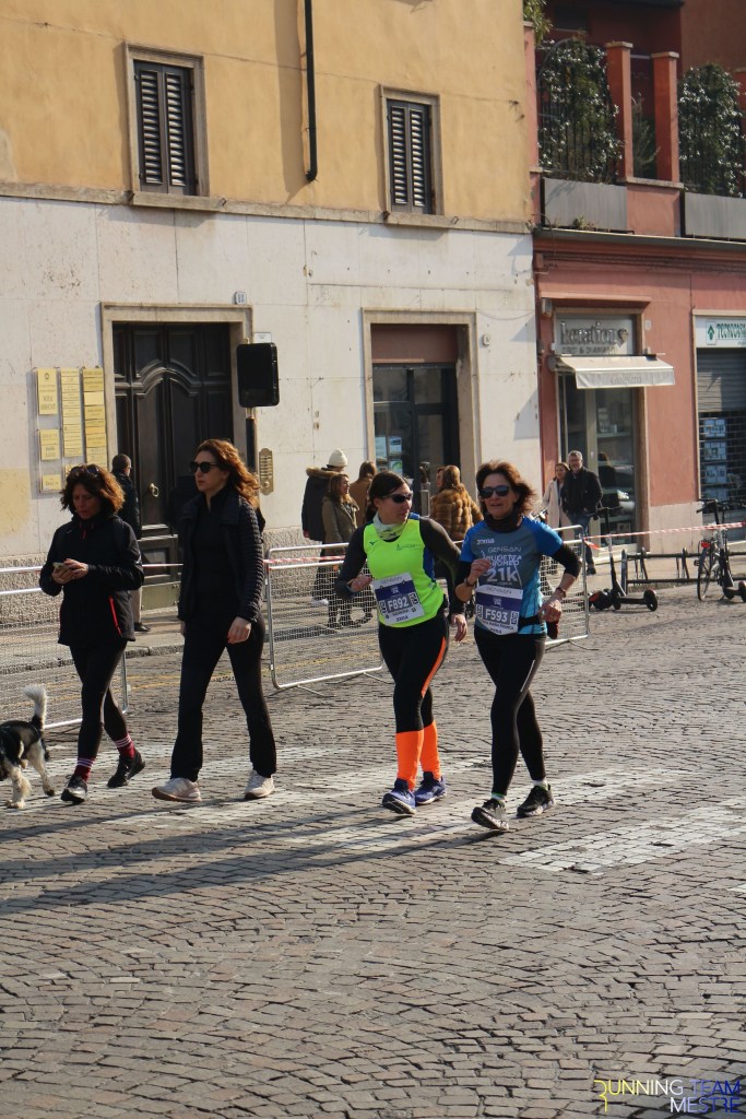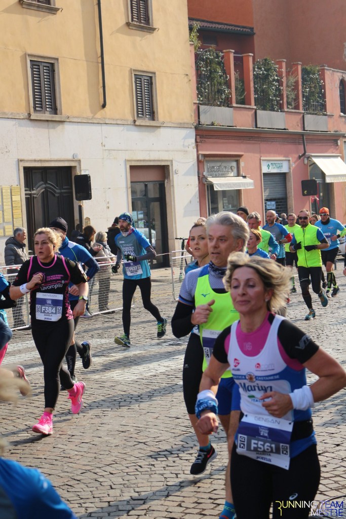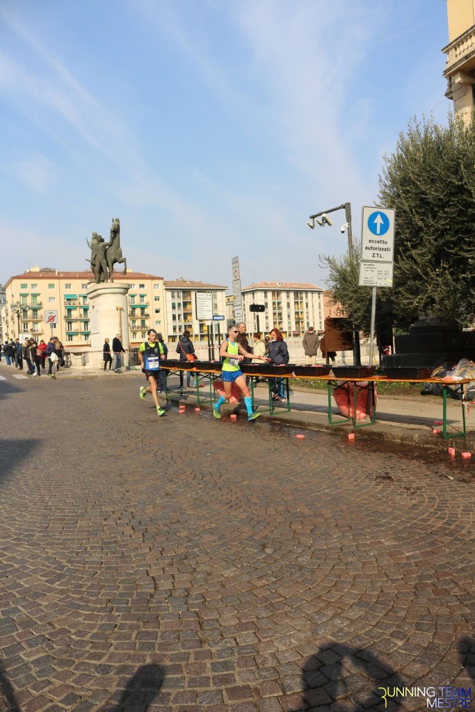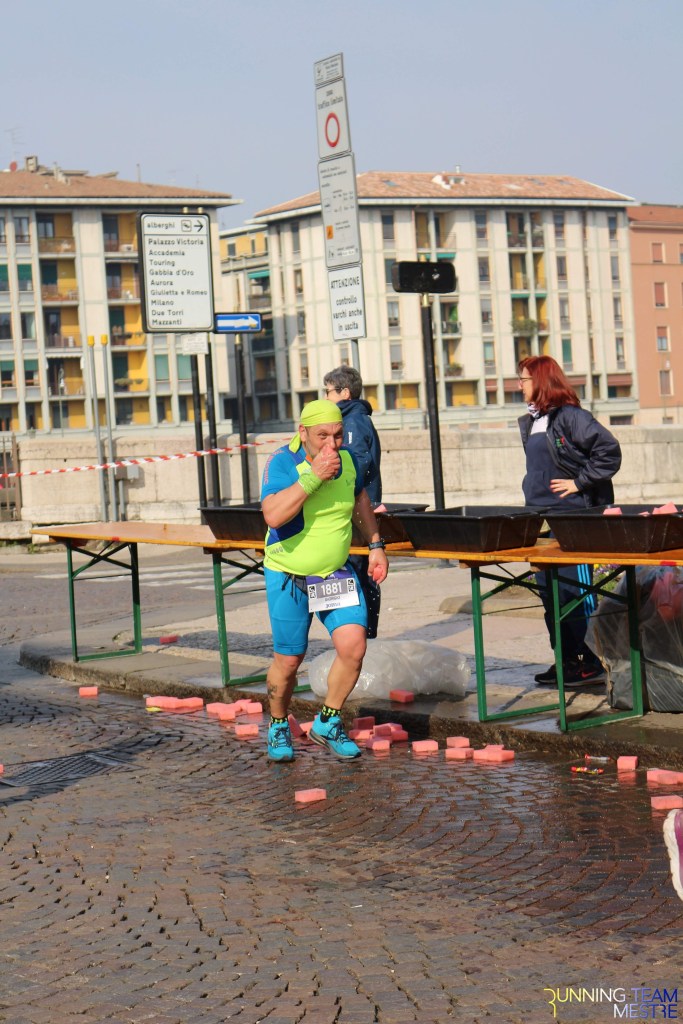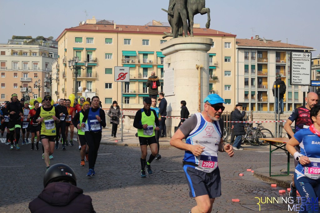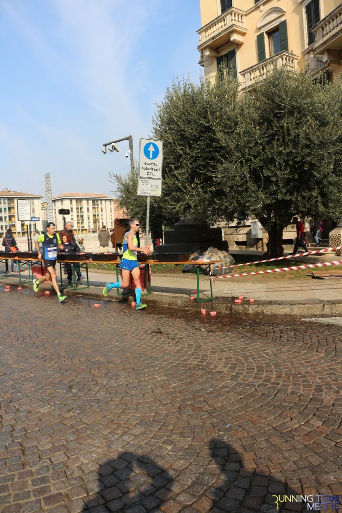 Pronti, partenza e via. All’ottavo km, ero già tra gli ultimi, al ventesimo avrei prosciugato il ristoro, all’arrivo è stato un sollievo vedere i rubinetti della Veritas. Per la cronaca, sono arrivata mentre il vice mi salutava e dietro di me avevo solo cinque persone; poco prima, al ristoro a Passo Campalto, il commento dei volontari è stato: “dopo de questi, manca soeo i reduci daea guera de Russia” in verace slang veneziano.