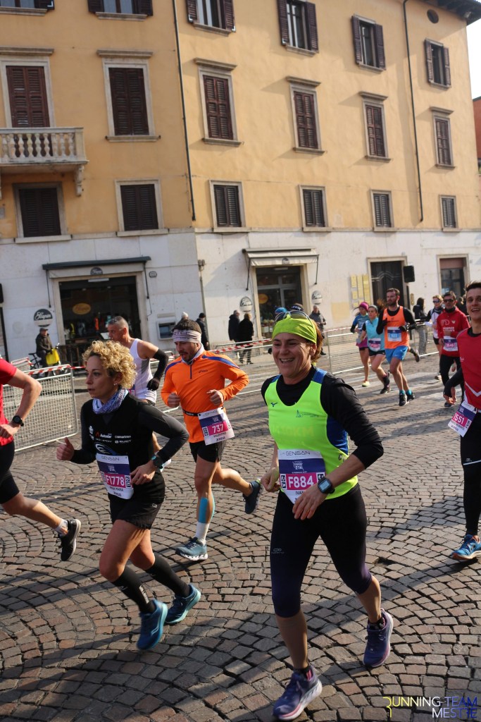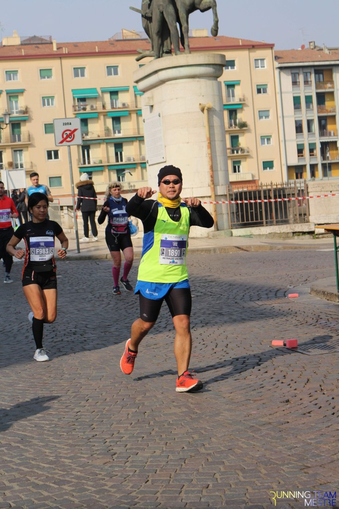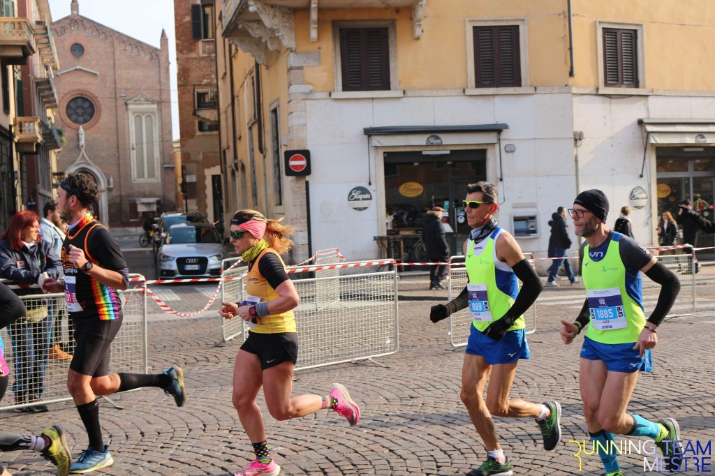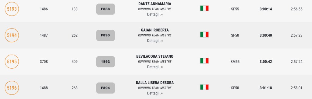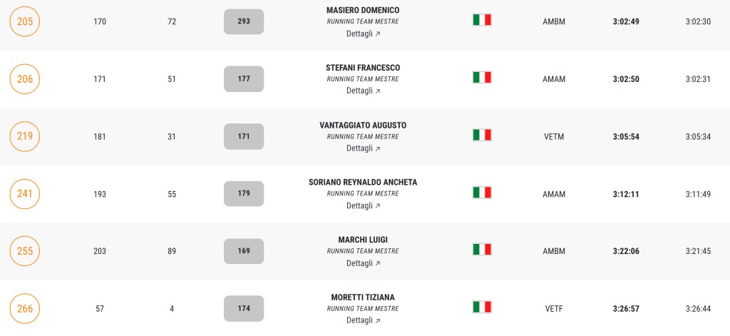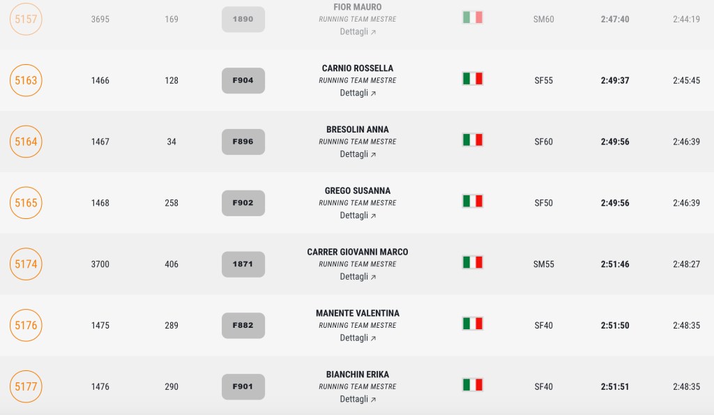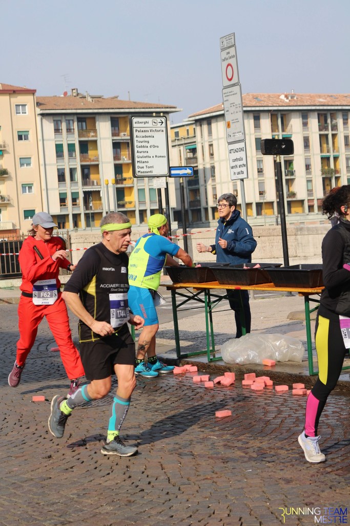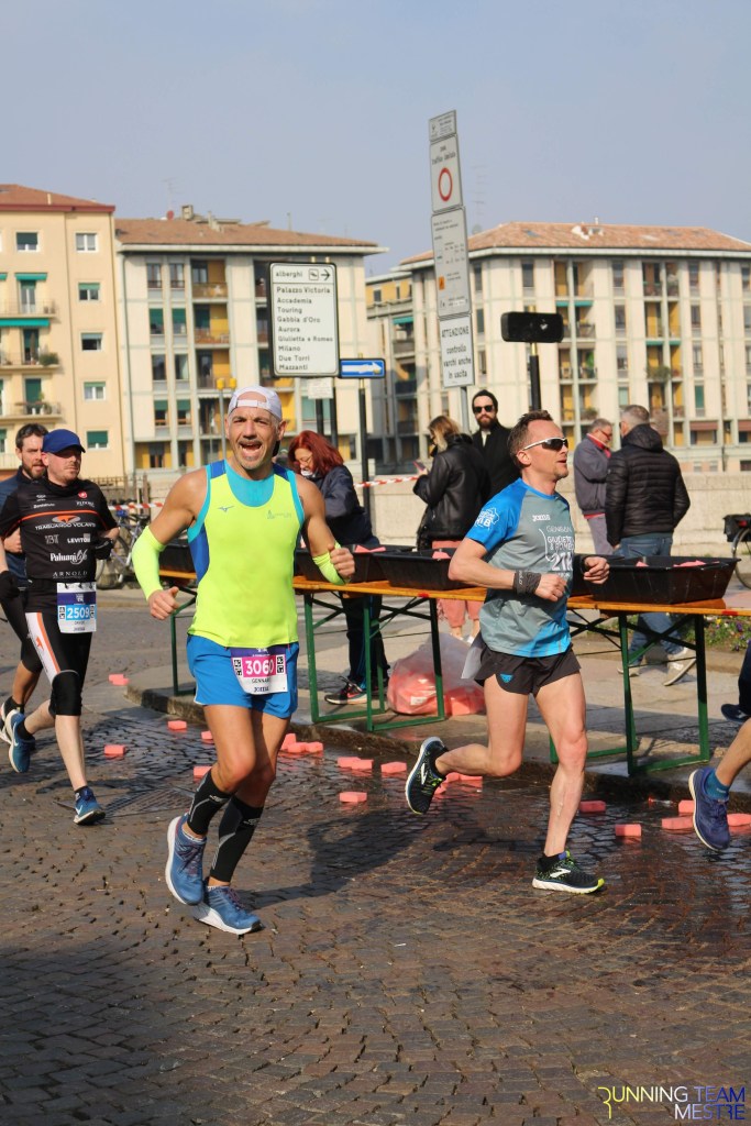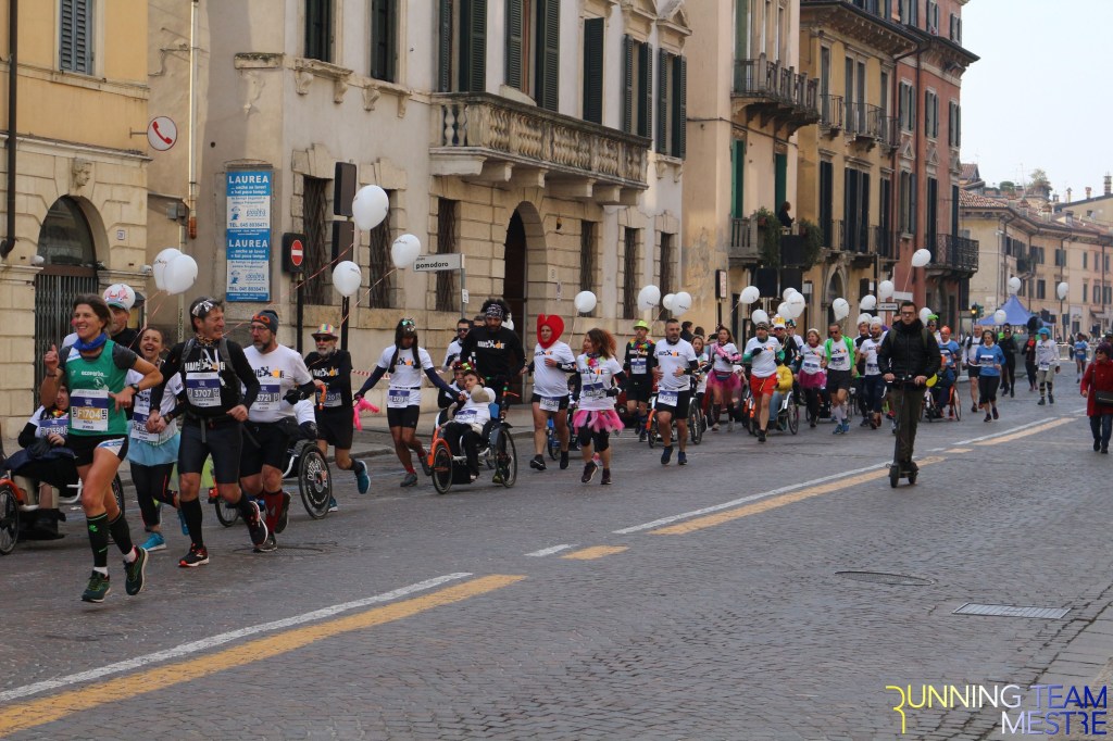Pronti, partenza e via. All’ottavo km, ero già tra gli ultimi, al ventesimo avrei prosciugato il ristoro, all’arrivo è stato un sollievo vedere i rubinetti della Veritas. Per la cronaca, sono arrivata mentre il vice mi salutava e dietro di me avevo solo cinque persone; poco prima, al ristoro a Passo Campalto, il commento dei volontari è stato: “dopo de questi, manca soeo i reduci daea guera de Russia” in verace slang veneziano.