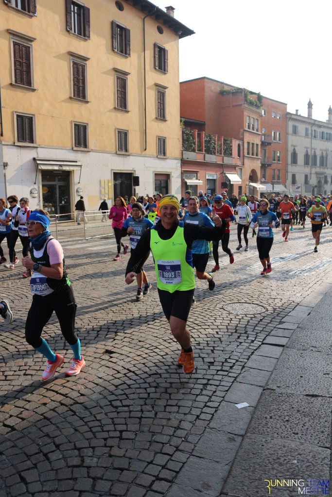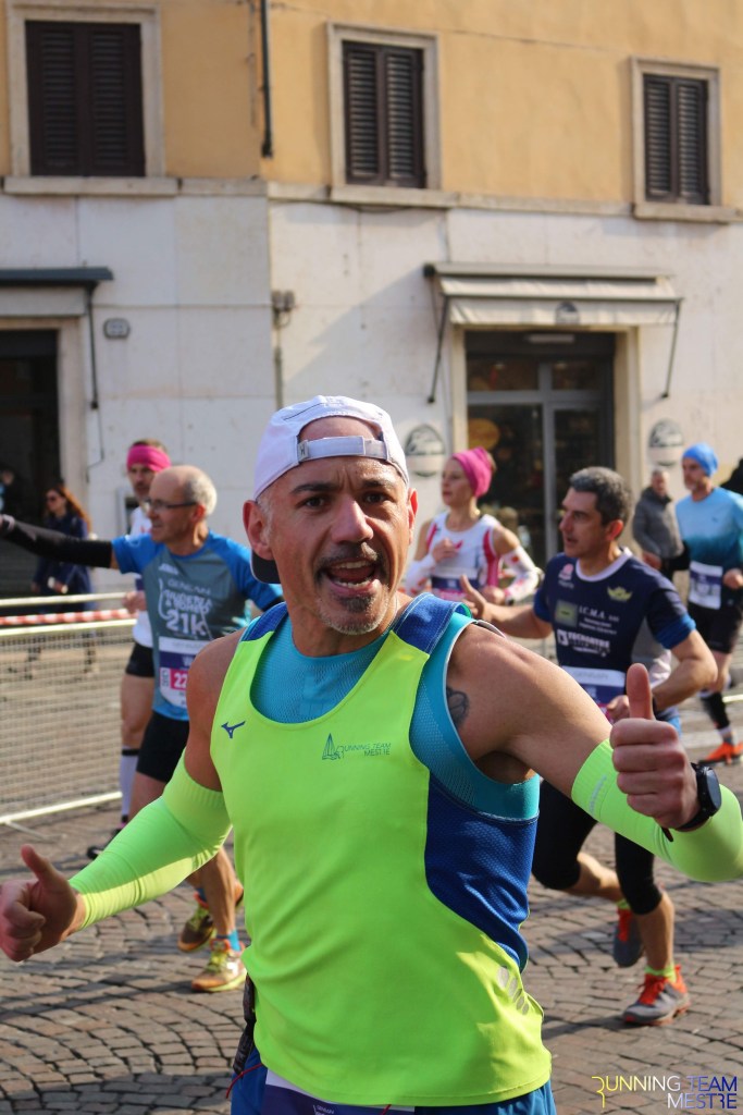Mi diverto un sacco con le foto di rito, la convivialità e le risate con i compagni di corse, e poi questa mia prima maratona la voglio preparare e la Maratonella è decisamente un buon test.