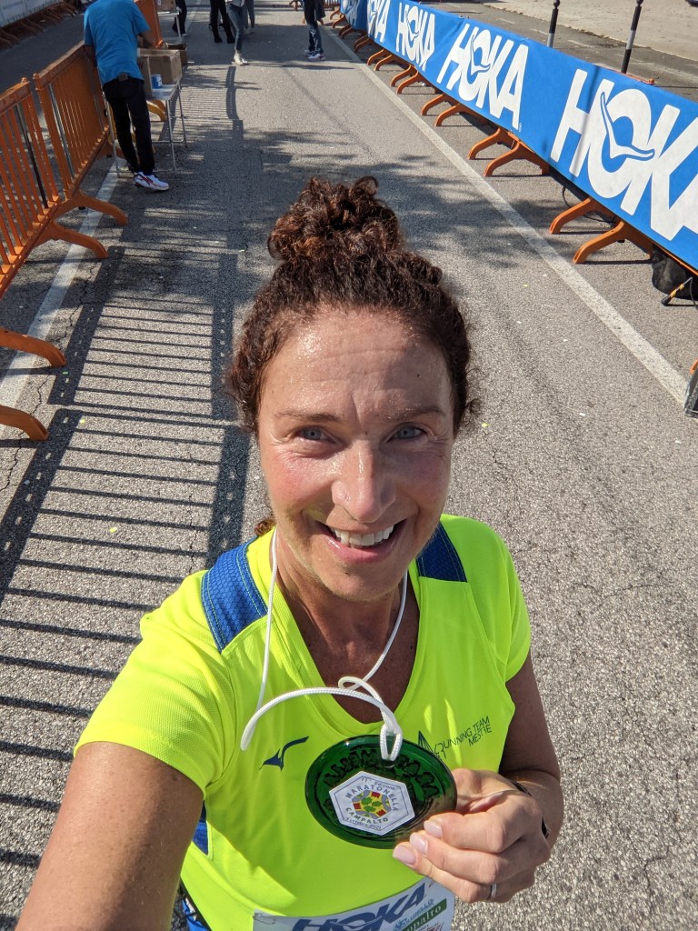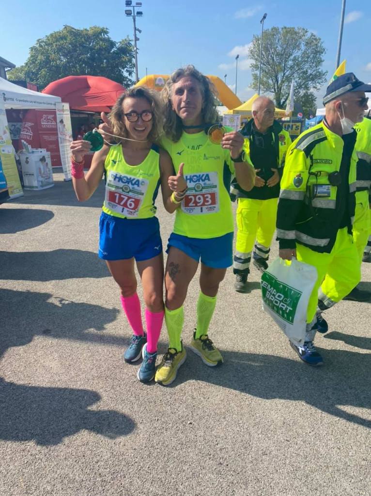 Però, lo devo proprio dire, una bella esperienza. Mi mancavano le corse e non solo, anche un po’ l’ansia del giorno prima, modello “Notte prima degli esami” e la preparazione/vestizione la mattina della corsa, con mille dubbi anche sull’aver sbagliato calzini, troppo grossi o troppo sottili.