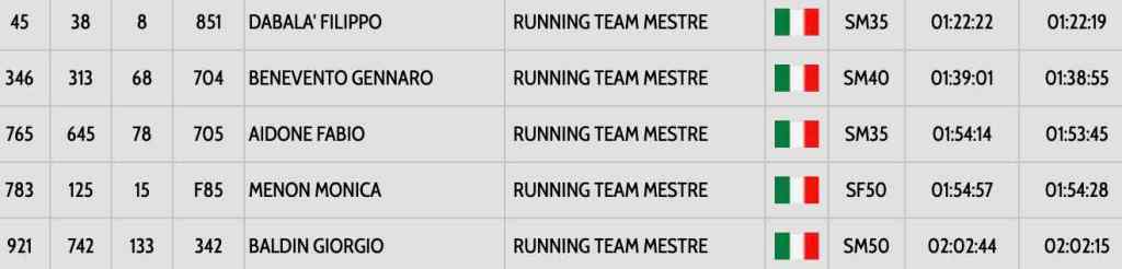 Ecco i tempi finali con cui hanno tagliato il traguardo i nostri atleti.