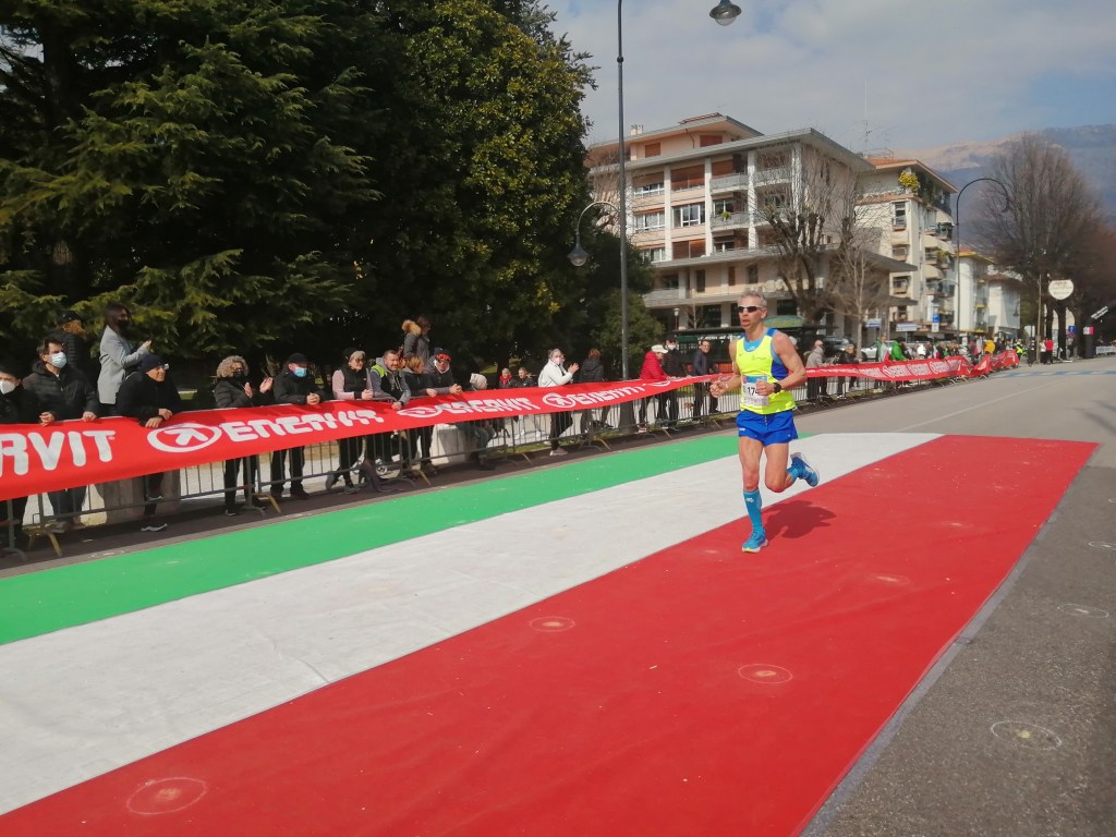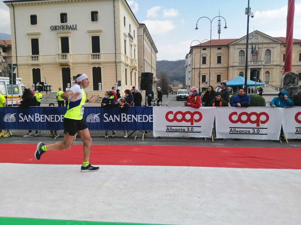 Mancano circa 2 km e affianco un ragazzo in crisi, mi dice che è la sua prima mezza, del tempo non mi importa e quindi gli dico di attaccarsi. Lo tiro fino all’ultima curva e poi gli dico che lo lascio così avrà le foto da solo (spero sia arrivato).